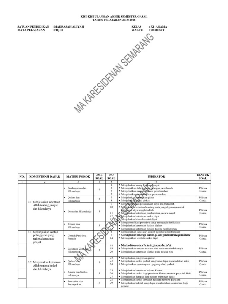 Urut kompetensi dasar materi indikator semester kognitif soal kd 1 3.1 menelaah ketentuan xi/1 jinayat 1.